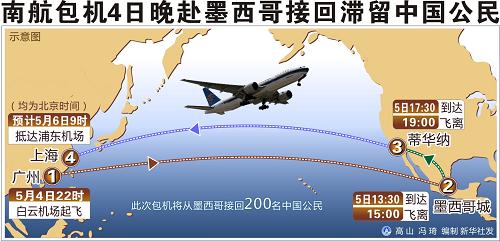 新華網(wǎng)廣州5月6日電(記者陳冀)記者從中國南方航空公司獲悉,北京時(shí)間6日凌晨2時(shí)52分,南航赴墨西哥包機(jī)從墨西哥蒂華納機(jī)場起飛,經(jīng)過約14小時(shí)的飛行,預(yù)計(jì)北京時(shí)間5月6日16時(shí)35分到達(dá)上海浦東國際機(jī)場。