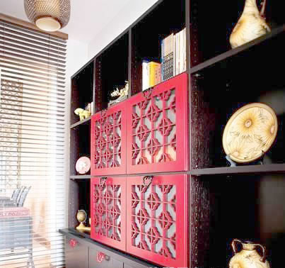 如將以前用來做藥柜的大型櫥柜現(xiàn)在當(dāng)做書架和電視柜。