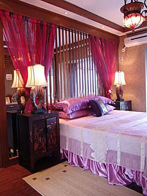 如夢似幻式。在洞房的四壁及天花板上,噴涂七彩墻飾涂料,以抽象、朦朧為基調(diào),造成一種如夢似幻的神秘遐想效果,使新婚蜜月充滿浪漫氣息。
