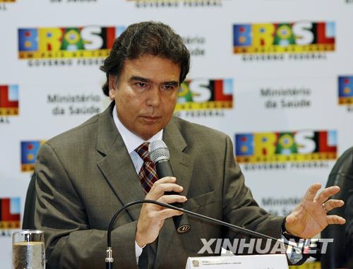 5月7日,巴西衛(wèi)生部長若澤·滕波朗在首都巴西利亞召開的新聞發(fā)布會上宣布巴西已發(fā)現(xiàn)4例確診甲型H1N1流感病例。 新華社/路透