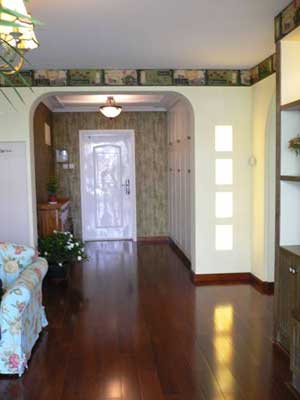 羅樹(shù)聰介紹,玄關(guān)通常與客廳或餐廳相連,但與廳的功能有區(qū)別,所以要通過(guò)裝飾設(shè)計(jì)進(jìn)行功能分區(qū)。通常采用的方法主要是吊頂、墻面裝飾、地面的材料和色彩等區(qū)分或用門(mén)套、掛落、屏風(fēng)、柜子等隔斷。玄關(guān)可以是一個(gè)封閉、半封閉或全開(kāi)放的空間,與廳的關(guān)系是連而不直達(dá)、隔而不斷。