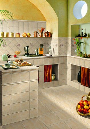 瓷磚的材質(zhì)分為釉面磚、通體磚等幾大類。廚房墻面磚首選光滑的釉面磚,清潔起來非常方便,還可以隨主人的喜好拼貼出不同的裝飾效果。地面瓷磚材質(zhì)則最好選擇啞光面的,防止地磚灑上水后,將人滑倒。