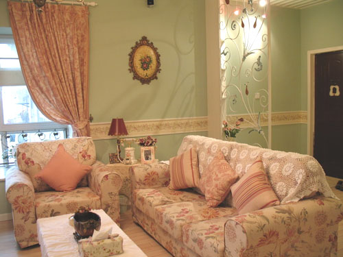 沙發(fā):沙發(fā)的顏色一般選擇暖色調(diào)的,像淺淺的橙色、粉色、草綠色都可以顯出田園派的寧靜和清新。沙發(fā)可以和窗簾選擇同一種顏色和圖案的布藝產(chǎn)品,也可以將不同的顏色和圖案進行混搭,使客廳的布置在視覺上更加的豐富和飽滿。