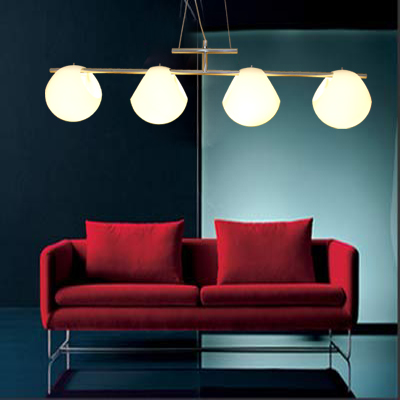 吊燈的組合形式多樣,單盞、三個(gè)一排、多個(gè)小燈嵌在玻璃板上的,還有由多個(gè)燈球排列而成的,體積大小各異。在選擇餐廳吊燈時(shí),就要根據(jù)餐桌的尺寸來(lái)確定燈具的大小。餐桌較長(zhǎng),宜選用一排由多個(gè)小吊燈組成的款式,而且每個(gè)小燈分別由開(kāi)關(guān)控制,這樣就可以依用餐需要開(kāi)啟相應(yīng)的吊燈盞數(shù)了。如果是折疊式餐桌,那就可以選擇可伸縮的不銹鋼圓形吊燈來(lái)隨時(shí)依需要擴(kuò)大光照空間。而單盞吊燈或風(fēng)鈴形的吊燈就比較適合與方形餐桌或圓形餐桌搭配了?!?