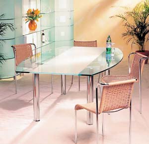 玻璃餐桌相比傳統(tǒng)木制餐桌,樣式更大膽前衛(wèi),功能更趨于實(shí)用。其相比木材餐桌而言,玻璃餐桌不會受室內(nèi)空氣的影響,不會因濕度不宜而變形;相比布藝和皮質(zhì)清理更加容易,占用空間小;相比塑料更安全環(huán)保,無污染、無輻射;造型上玻璃餐桌的簡潔時尚和隨心所欲更是其相比其他產(chǎn)品的優(yōu)勢所在。