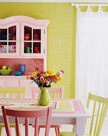 搭配建議:搭配粉白、粉紅、粉黃等可愛的色彩,能充分延續(xù)粉綠色墻面明媚的感覺,并提升層次感。造型柔和、質(zhì)地溫潤的田園家具,能與色彩本身那種爛漫純真的感覺和諧如一。