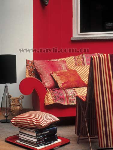 即使是西式的家居布置,同樣可以選用艷麗的東方風(fēng)格布藝做裝點(diǎn)。東方艷麗風(fēng)格布藝的紅色恰好與空間里的紅色墻壁、沙發(fā)屬于同一個色系,搭配出十分和諧的效果。西亞的建筑圖案與中國的傳統(tǒng)紋樣疊在一起使用,并且搭配了材質(zhì)相近、顏色相似的條紋布藝作為橋梁,令東方艷麗的風(fēng)格更為突出,與居室整體的風(fēng)格也更加諧調(diào)。