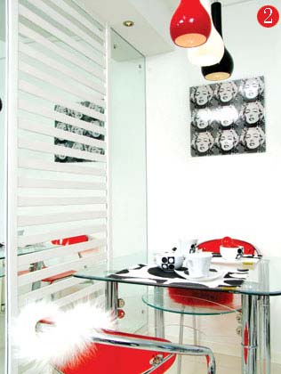 ★利用鏡子。鏡子具有視覺'欺騙'的作用,能增強居室的燈光亮度,讓你在視覺上覺得空間增大。餐廳背景墻鏡片和石膏板抽條結合,既可用作試衣鏡,又可作裝飾背景墻,同時還增大視覺空間。