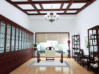 中式家具的顏色較重,雖可營造出穩(wěn)重效果,但也容易陷于沉悶、陰暗,因此中式書房最好有大面積的窗戶,讓空氣流通,并引入自然光及戶外景致。