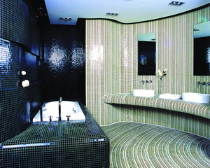 除了馬賽克的花色選擇和風(fēng)格拼貼以外,還不能忽視馬賽克與地面、衛(wèi)浴用品及飾品的和諧搭配。一般來(lái)說(shuō),深色馬賽克的浴室空間內(nèi)應(yīng)搭配輕松、明快顏色的衛(wèi)浴用品。比如可以搭配白色衛(wèi)浴產(chǎn)品,飾品的色彩可以相對(duì)跳躍一些,這樣能夠增加室內(nèi)活潑、靈動(dòng)的氣氛。
