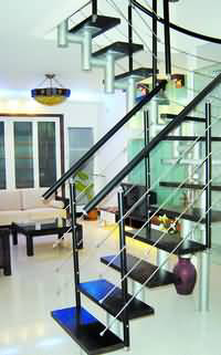 現(xiàn)在市面上的樓梯,按主骨材料可分為水泥、木質(zhì)、鐵藝、鋼骨等幾類。其中,水泥樓梯造價比較堅固、經(jīng)濟(jì),但由于材料笨重、外形壓抑、缺乏造型、占地空間大而日顯落伍;木制樓梯作為傳統(tǒng)樓梯,木材本身的溫暖感加上與地板材質(zhì)和色彩容易搭配,施工相對也較方便,市場占有率比較大,但缺點(diǎn)是難與現(xiàn)代風(fēng)格的家庭裝修相匹配;鐵藝樓梯由筑鐵件現(xiàn)場焊接而成,顯得古樸典雅,但牢固性較差,在沿海地區(qū)容易生銹腐蝕;鋼骨樓梯既集合了上述幾種樓梯的優(yōu)點(diǎn),又比較時尚、通透,成為現(xiàn)代家庭裝修的首選。