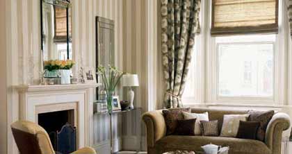 人們喜歡在客廳運(yùn)用中性色調(diào),認(rèn)為這樣可以永不過(guò)時(shí)??墒?,中性色調(diào)、實(shí)木家具與厚重沙發(fā)面料的組合,往往令整個(gè)空間顯得暗淡陳舊。室內(nèi)設(shè)計(jì)師的竅門是:利用鏡子和玻璃表面的裝飾品,為空間帶來(lái)閃亮高調(diào)的效果。