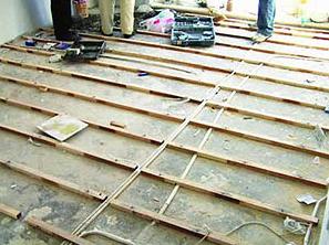 5.木擱柵安裝應(yīng)牢固,木擱柵門(mén)勺含水率應(yīng)≤16.0%。地板鋪設(shè)應(yīng)無(wú)松動(dòng),行走時(shí)無(wú)明顯響聲。地板與墻面之間應(yīng)留8mm~12mm的伸縮縫。