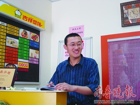 王欣欣2008年畢業(yè)于東北師大。大四那年,他曾經(jīng)闖蕩深圳找工作,后來考研沒有成功,便選擇在濟(jì)南開起一家餛飩店。當(dāng)起小老板的王欣欣依然一臉學(xué)生氣。 吳金彪攝