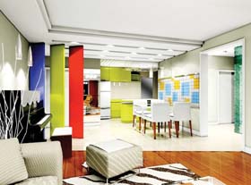 業(yè)主是一對(duì)年輕夫婦,正處在開始享受生活的黃金階段。在他們還沒(méi)有小寶寶之前,這套130平方米的三居室也可以算是他們“愛(ài)的結(jié)晶”。女業(yè)主對(duì)鮮明的色彩情有獨(dú)鐘,因此房間通過(guò)幾種亮麗色彩的點(diǎn)綴,把家裝扮成了青春涌動(dòng)的空間。如此一來(lái),打造出了符合自己口味的房間,生活在這樣的空間也是非常有成就感,非常愜意的。