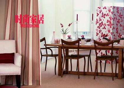 在中性色彩的空間里,暖色調(diào)的實(shí)木家具和草編椅子,讓玫瑰色變得更加濃郁,屏風(fēng)上明朗的花草圖案為空間帶來(lái)了幾分嫵媚,并與精美的餐具相映成趣。