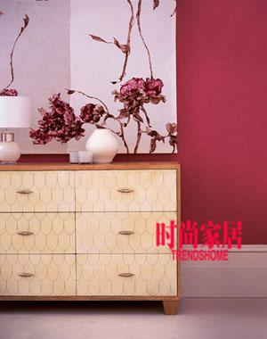 做工精細(xì)的柜子,絢麗奔放的玫瑰花裝飾畫(huà)板,與深粉色的背景墻,搭配出一個(gè)優(yōu)美的多層次空間。
