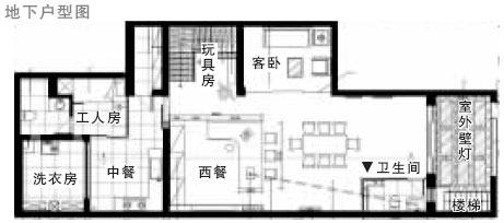 中餐廳:是封閉式的,布置較簡(jiǎn)單,有灶臺(tái)和洗碗池。把中餐廚房封閉起來(lái)主要是為了避免油煙污染整個(gè)地下室的空氣,從而保證地下室的空氣比較干凈。