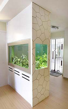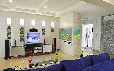 魚缸筑墻,不但讓人眼前一亮,而且能讓客廳享有更多隱私。