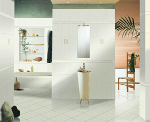2.無論廚房還是衛(wèi)生間,如果面積較小,則不適用于深色和暖色系的墻磚。因為深色的墻磚使人感覺空間變小,越加使房間顯得陰暗:暖色系的墻磚,視覺上有往前趨近的感覺,會增加房間的壓抑感。因此這類房間通常采用淺色和冷色系的墻磚。