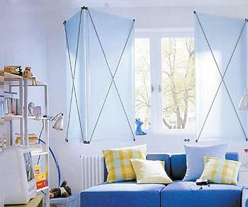 懸掛方式上,平拉式的大小隨意,平穩(wěn)勻稱,懸掛、開啟都很簡單;而吊起式可以根據(jù)光線的強弱而上下升降,當陽光只照到半個窗戶時,既不影響采光,又可以遮陽。這兩種式樣都比較適用于寬度小的窗戶。