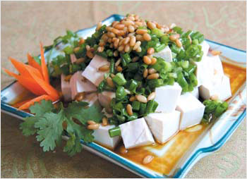 [配料]芹菜150克,豆腐1塊,食鹽、味精、香油個少許。