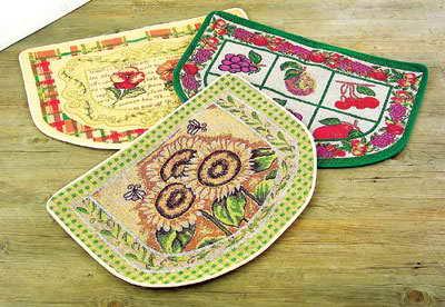 這幾個(gè)以格子和小花圖案做花邊,帶有濃郁的歐洲古典韻味的小墊子非常可愛(ài)?;ǘ浜退麍D案,放在餐桌上,更有怡人的效果。