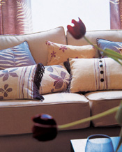 細(xì)則:乳白色的沙發(fā)上堆滿了印花棉布的靠墊,茶幾上花瓶中的紫色郁金香與擱板上的小花,一高一低,相互呼應(yīng),既養(yǎng)眼又使人不自覺地聯(lián)想到溫暖的春季;紫色的基調(diào)悄悄透露出主人的浪漫情懷。