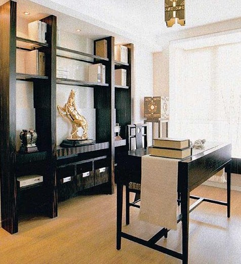 空間布局:書房的布局要盡可能地“雅”。在您的書房中,不要只是一組大書柜,加一張大寫字臺(tái)、一把椅子,您要把您的情趣充分融入您書房的裝飾中,一只藝術(shù)收藏品、幾幅您鐘愛的繪畫或照片、幾幅您親手寫就的墨寶,哪怕是幾個(gè)古樸簡單的工藝品,都可以為您書房增添幾分淡雅、幾分清新。