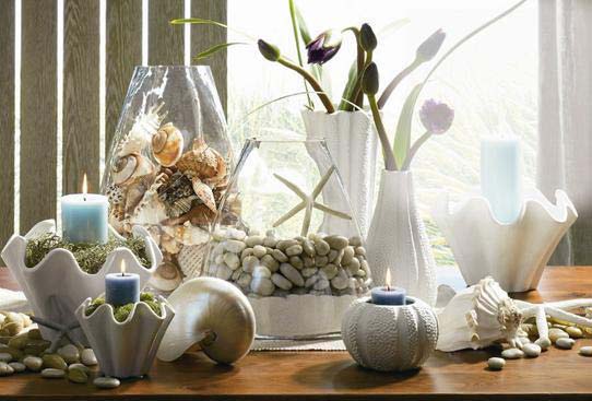 大件的家具置換起來(lái)如果嫌麻煩的話(huà),也可以從細(xì)處入手。小小的裝飾品也可以流露出恰到好處的自然風(fēng)味。晶瑩剔透的玻璃花瓶,可以用來(lái)裝海螺,海貝,河沙,意趣十足,通透明亮的感覺(jué),帶給居室點(diǎn)點(diǎn)清涼。各種樣式的陶瓷海膽花瓶,可以隨意插上幾束花,也可以當(dāng)成燭臺(tái),讓人不經(jīng)意聯(lián)想到海洋與自然的愜意。精巧別致的陶瓷碗,可以做燭臺(tái),可以直接當(dāng)擺飾,還可以盛放果蔬,既美觀又實(shí)用。這些小飾品即可以組合放置,也可以擺放在各處,隨意點(diǎn)綴空間。