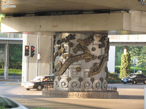 在上海出門似乎都要經(jīng)過高架路,車上高架路,總是會經(jīng)過上海高架路交流的中心──延安路、成都路。凡經(jīng)過此地的無一不被高架主柱上裝置的精美龍紋所吸引,瞬間必然會一個出現(xiàn)問題:延安路、成都路高架主柱上為什幺要獨“柱”一秀,圍上白鋼,紋上龍飾?無論你是坐私家車、公家車、還是出租車,開車的司機會主動告訴你一個關(guān)于高架與龍的的故事,出于每個司機之口,版本不同,內(nèi)容大同小異,充滿著神秘和神奇。