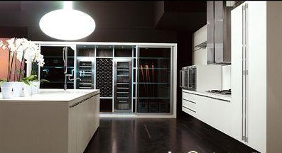 廚房宜采用歐式櫥柜 ,歐式櫥柜能整齊地收納廚房雜物,使廚房容易保持清潔,櫥柜以淺色或冷色系為佳,在烹飪時使人容易保持輕松愉快的心情。