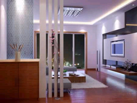 2、玻璃通透式:是以大屏玻璃作裝飾遮隔,或在夾板貼面旁嵌飾噴砂玻璃、壓花玻璃等通透的材料,既可以分隔大空間,又能保持整體空間的完整性。