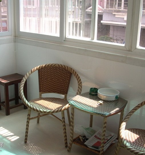 ?;u:如果是封裝的陽臺,和室內打通之后,可以選擇與室內一樣的玻化磚。?;u明亮光潔,鋪裝后顯得大方漂亮,價格適中,易于打掃清潔。但它也有缺點,即有一定的滲透性,當有顏色的污漬(如墨水)滴上后,必須迅速擦拭,不然就會滲進去留下印跡。久之,一多了就成了花的啦。不過,質量好的?;u的抗?jié)B透性好一些。這是?;u比不上釉面磚的特點。