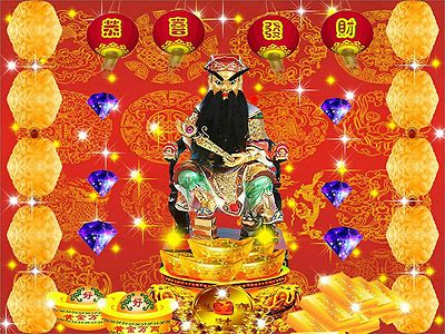 除了迎財神之外,祭祀財神也是必不可少的。每到春節(jié),舉國各地均祭祀財神,祭祀方法各異。北方地區(qū)春節(jié)時,家家請回財神,供奉財神像,焚香上供品。正月初二清晨祭焚財神像。祭祀時邊行禮邊誦祝詞:“香紅燈明,尊神駕臨,體察苦難,賜富百姓。窮魔遠離,財運亨通,日積月累,金滿門庭。南方敬祭財神供品內(nèi)容特別講究,供品共分三桌:第一桌為果品,有廣橘,示生意廣闊;第二桌為糕點,多用年糕,意為年年高,糕上插有冬青枝,意為松柏常青;第三桌為正席,有豬頭,全雞,全鴨,全魚等等,有招財進寶、魚躍的吉意。祭祀時,主人點燃香燭,眾人頂禮膜拜。人人滿懷發(fā)財?shù)南M?,祈愿在新的一年里大發(fā)大富。