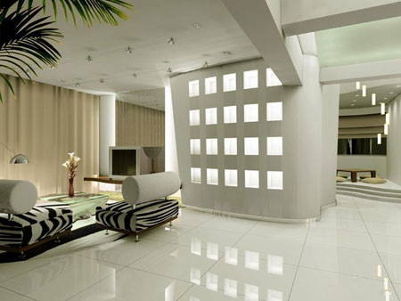 居室:這里一般不需要很強的光線,可用壁燈、落地?zé)魜泶媸覂?nèi)中央的頂燈,壁燈宜用表面亮度低的漫射材料燈罩,這樣就使臥室顯得光線柔和,利于休息。床頭柜上可用子母臺燈,大燈作閱讀照明,小燈供夜間起床用,另外,還可在床頭柜下或低矮處安上腳燈,以免起夜時受強光刺激。如果是雙人床,還可在床的兩側(cè)各安一盞配上調(diào)光開關(guān)的燈具,以便其中一人看書報時另一人不受光的干擾。