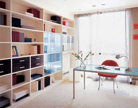 居住面積大的家庭可以有專門的書房,面積小的家庭也可以一屋兩用。書房家具主要有書柜、電腦桌(或?qū)懽峙_)、坐椅三種。選擇時要注意: