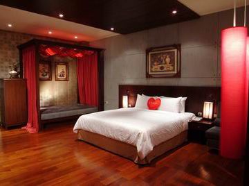 植絨面料的窗簾較為厚重,吸音、遮光效果好;選用紅、黑配合的窗簾,有助于盡快入眠。
