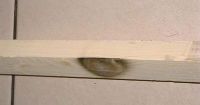 測試結(jié)果:在燃燒到第2秒時,普通木龍骨開始變黑,至第8秒時,火力集中的部位出現(xiàn)黑煙和零星的火星,邊緣向深層有燃燒的跡象。至第10秒時,發(fā)黑部位深至另一面。