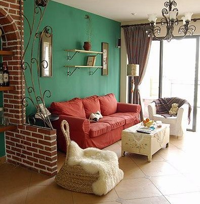 對(duì)比色具跳動(dòng)感,紅墻綠沙發(fā),強(qiáng)調(diào)了沙發(fā)的形狀,很跳但容易看膩,一般建議不能多用,只能使用在重點(diǎn)區(qū)域。