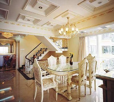 此風格繼承了巴洛克風格中豪華、動感、多變的視覺效果,也吸取了洛可可風格中唯美、律動的細節(jié)處理元素。大至吊頂、衛(wèi)浴、樓梯隔欄,小至壁畫、燈具甚至一個鏡面都要有著歐洲古典風味。
