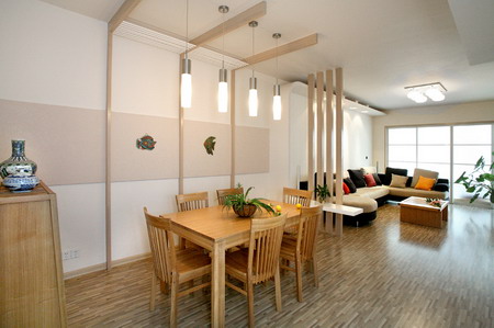 概要: 色彩不能改變事物的本質(zhì),卻能改變它們的面貌甚至情緒。如今的人們比任何一個時代更喜歡運用顏色,當(dāng)然,我們的家也不例外,而且不只是顏色,圖案和配飾都會影響到家的氛圍。這個清爽的季節(jié),舒適的自然氣質(zhì)會是流行主題。 氣氛恬淡的客廳里,沙發(fā)、茶幾、墻壁、地毯的顏色組合出光感充足的明快基調(diào)。一盞吸引眼球的吊燈,有趣的圖案讓整個空間變得活潑起來。