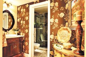 浴室一角放上手繪邊角柜,再配上一幅薔薇花油畫(huà);壁爐上面擱幾個(gè)印花的陶罐和懷舊的燭臺(tái);很隨意的一個(gè)角落里,你會(huì)驚喜地發(fā)現(xiàn)一組別致的花瓶;家具各處的大小擺件、盛裝美食的陶瓷盆碗,就這樣被設(shè)計(jì)師用挑剔的眼光從各處淘來(lái),又用對(duì)家居細(xì)節(jié)近乎完美的考量將它們散落在家的各處,讓人就這樣迷戀上家的每個(gè)角落。