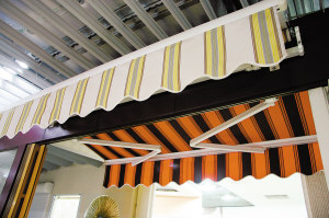 第一,支架材料是關(guān)鍵。無論是支撐桿、傳動(dòng)桿還是折臂都需要堅(jiān)固的材料予以保障。一般全不銹鋼作為支架材料為宜,鋁合金次之。另外,折臂的外露部分一定要有防腐涂層,這樣才能保證遮陽篷的安全。