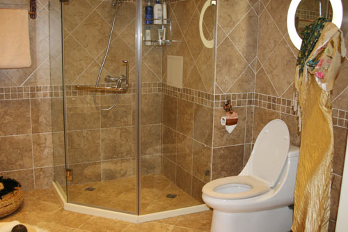 比如在衛(wèi)生間貼瓷磚的時(shí)候人們總希望做個(gè)腰線,這樣會比較好看??墒茄€往往是很貴的,其實(shí)開動腦筋,換種思路也能夠起到同樣的效果??梢园研l(wèi)生間進(jìn)門的主視角那個(gè)位置的瓷磚換成別的顏色,例如黑色、金色等,這樣也能突出整面墻的跳躍效果,還省下了不少錢。