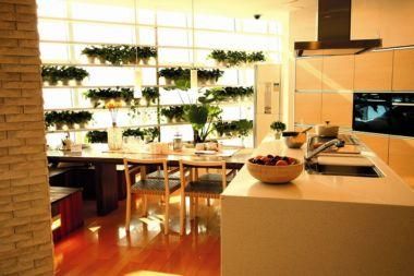 另外,廚房也是不錯的休息區(qū),可以在廚房里添設(shè)娛樂設(shè)備,但電視和音響宜遠(yuǎn)離爐臺與水槽,可存放于同雙眼平高的層架上,以不致碰到食物為宜。若廚房是位于多功能的大房間一隅,在廚房的設(shè)計上,宜和室內(nèi)其他部分搭配融合,在空間允許的條件下,不妨用多功能桌椅、燈飾或沙發(fā)等獨(dú)立家具來搭配廚具。