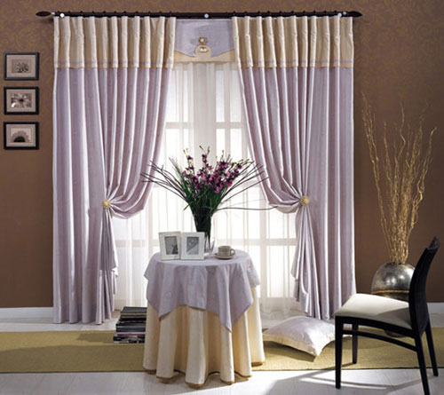 如果室內(nèi)色調(diào)柔和,并為了使窗簾更具裝飾效果,可采用強(qiáng)烈對(duì)比的手法,比如在鵝黃色的墻壁垂掛蘭紫色的窗簾,反之,如果客廳內(nèi)已有色彩鮮明的風(fēng)景畫,或其他顏色濃艷的裝飾物、家具等,窗簾就最好素雅一點(diǎn)。