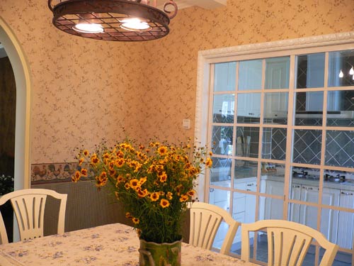 5、避免使用瓷磚腰線,因?yàn)楠M小的空間使用腰線會令空間顯得雜亂、煩瑣,但可適當(dāng)鋪貼幾片花片進(jìn)行點(diǎn)綴,使得廚房間流露出幾許生機(jī)和浪漫。