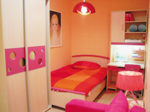 在兒童家具的設(shè)計上,充分適應(yīng)兒童的特點。由于兒童好動的天性,家具在設(shè)計上棱角之處被處理得比較圓滑,杜絕銳角,固定家具用的鉚釘?shù)炔煌饴?,或鑲以橡膠條等柔軟之物,以防孩子在奔跑中碰傷。床邊設(shè)有護欄,結(jié)實而且還有一定的高度,以防在睡眠中從床上墜下來跌傷,柜櫥門的把手也被設(shè)計得方便兒童的握取。重心穩(wěn)固也是兒童家具的一個特點。因為對于一個淘氣的小精靈來說,低矮的桌椅是一個蹦上跳下的好跳臺,如因家具不夠穩(wěn)而被踩翻,孩子很容易受到意外的傷害,而擱放東西的高架如被扳倒,也會砸到幼童。