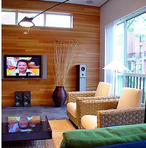 例如墻面為淺藍色,沙發(fā)則可選深藍色,抱枕則選用對比的橘色或沖突的紅色或是多色的圖樣。最好再加以一盆綠色喬木盆栽。大地色搭配永不失敗,因其來自自然界。